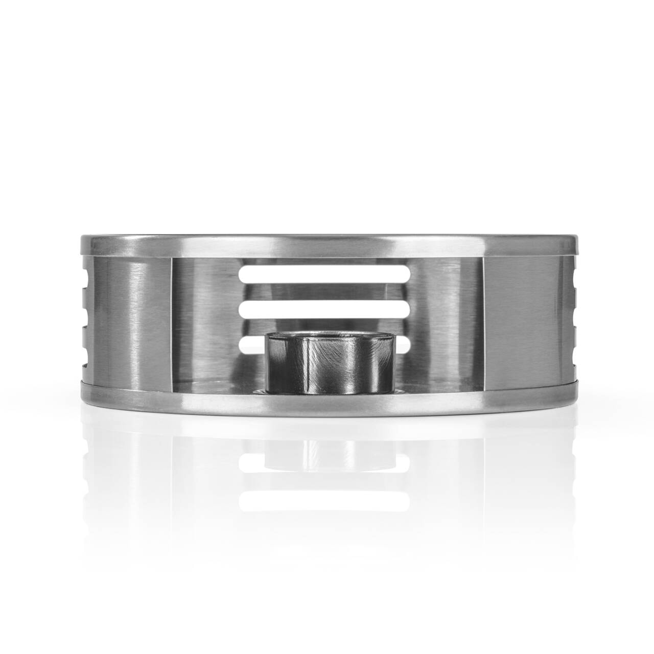 Der Kannenwärmer zum Warmhalten von Teekannen, Kaffeekannen und Kannen aus Glas mit einem Durchmesser von 7-14 cm. In die seitliche Öffnung können sie ein handelsübliches Teelicht einsetzen, mit dem fixierten Teelichthalter bleibt dieses an seinem Platz. Das Teelicht erwärmt die Kanne und hält das Heißgetränk lange warm. Das Stövchen ist aus Edelstahl und kann durch abwischen einfach und leicht gereinigt werden.