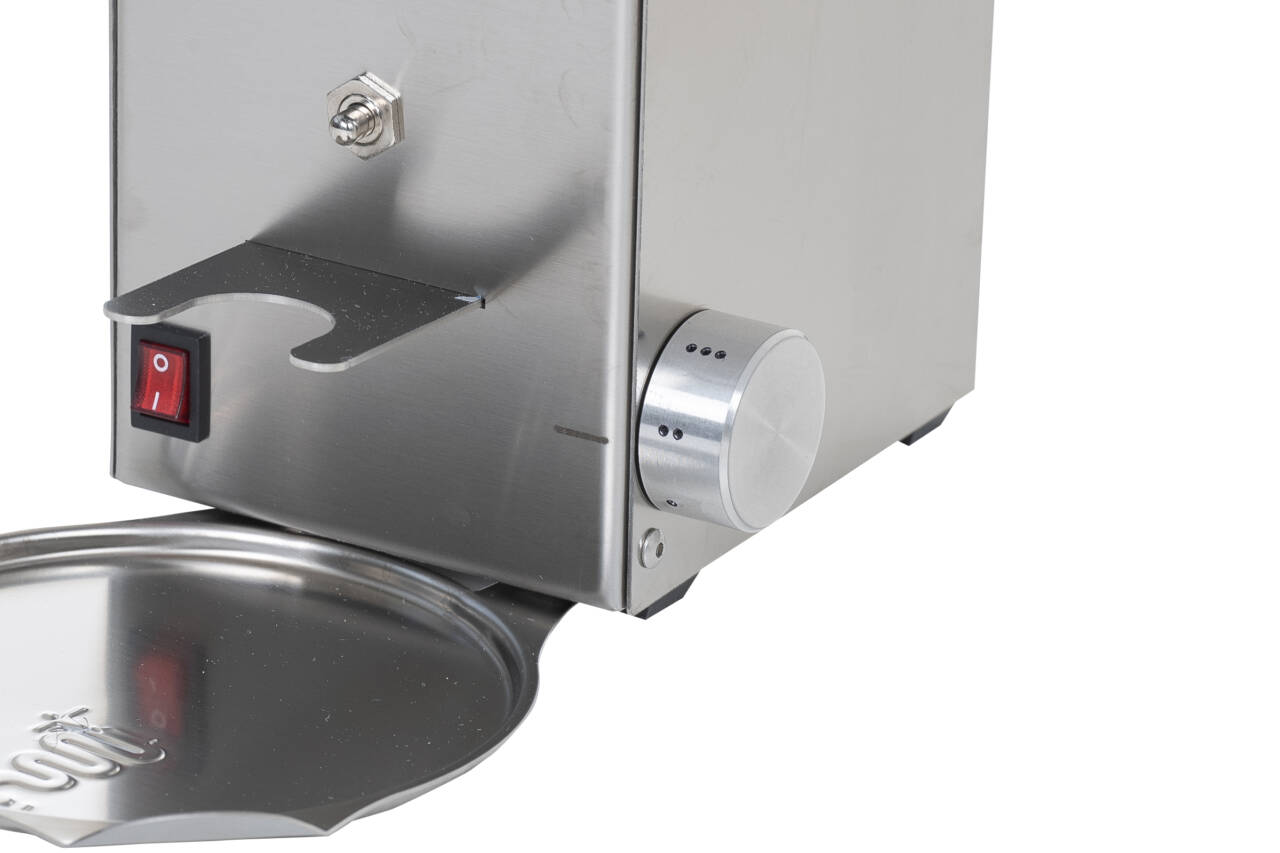 Diese Ausführung der Bezzera Espressomühle BB005 manuale hat ein großes Drehrad an der Seite der Kaffeemühle mit dem Drehrad können sie die Portionsgröße und den Mahlgrad in Kombination, anhand der Skala einstellen. Anschließend müssen sie nur noch den Siebträger in die Halterung einstecken.Durch einen Knopfdruck wird der Mahlvorgang gestartet und sie erhalten frisch gemahlenes Kaffeemehl für einen Espresso mit vollem Aroma Die Bezzera Espressomühle BB005 TM ist eine kleine, kompakte und halbautomatische Kaffeemühle zum Mahlen von Kaffeebohnen.