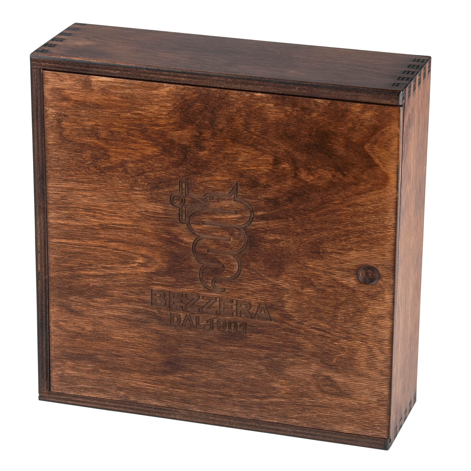 Das 6-teilige Siebträger Set für die Bezzera Espressomaschine BZ10 ist in einer dekorativen Holzbox, einer Geschenkbox für Barista verpackt. Die Bezzera Holzbox ist auch ideal zur Aufbewahrung der Siebträger und Siebe. Im Set ist ein Bezzera Siebträger mit einem Auslauf und ein Bezzera Siebträger bzw. Filterträger mit Doppelauslauf für 2 Espresso gleichzeitig enthalten. Mit im Set enthalten sind auch die passenden Siebe für die beiden Siebträger. Zusätzlich sind 2 Knöpfe einen für den Dampfbezug und für die Wasserlanze enthalten.