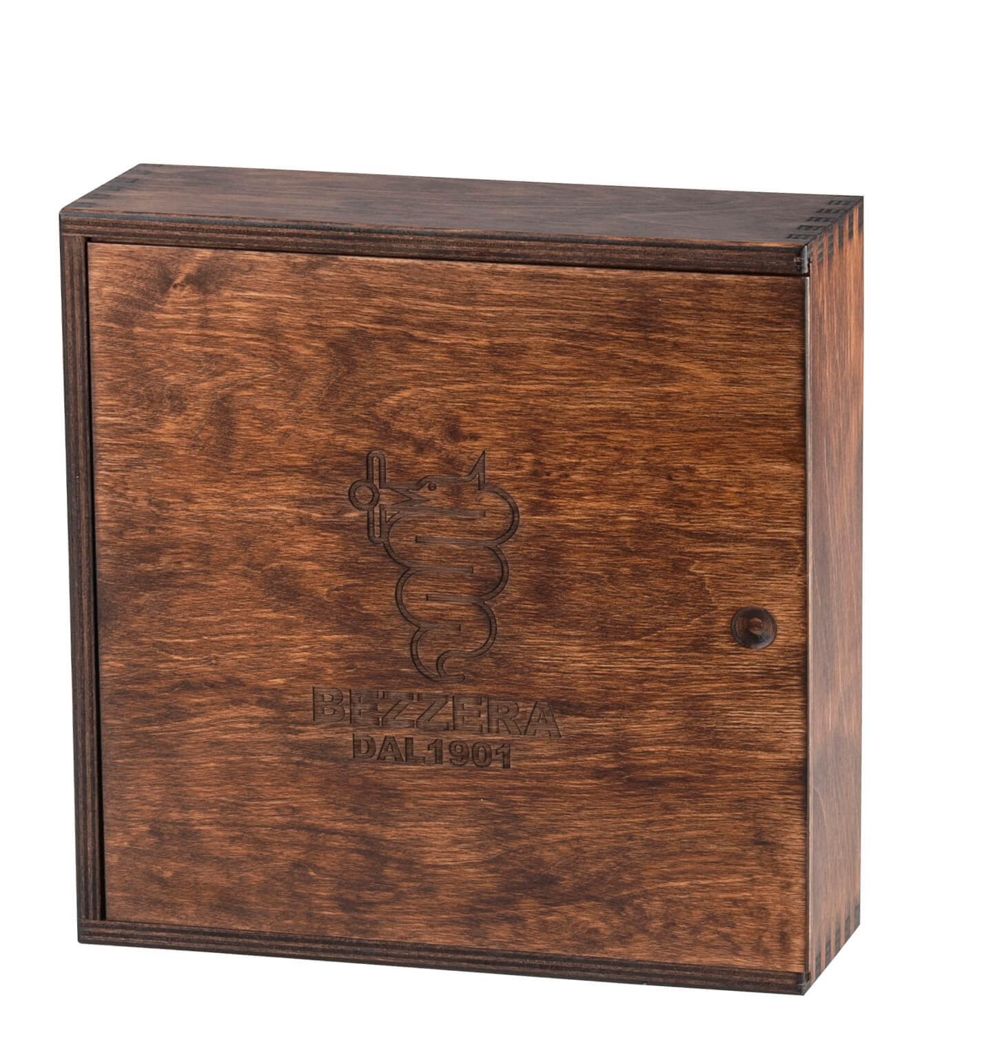 Das 6-teilige Siebträger Set für die Bezzera Espressomaschine Unica ist in einer dekorativen Holzbox, einer Geschenkbox für Barista verpackt. Die Bezzera Holzbox ist auch ideal zur Aufbewahrung der Siebträger und Siebe. Im Set ist ein Bezzera Siebträger mit einem Auslauf und ein Bezzera Siebträger bzw. Filterträger mit Doppelauslauf für 2 Espresso gleichzeitig enthalten. Mit im Set enthalten sind auch die passenden Siebe für die beiden Siebträger. Zusätzlich sind 2 Knöpfe einen für den Dampfbezug und für die Espresso-Bezugshebel enthalten. Passend für alle Bezzera Siebträgermaschinen Unica.