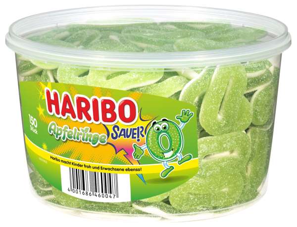 Die kandierten SAUREN APFELRINGE sind schon lange ein Geheimtipp im HARIBO-Sortiment. Der fruchtige Apfelgeschmack kombiniert mit leichter Säure erfrischt besonders zwischendurch.