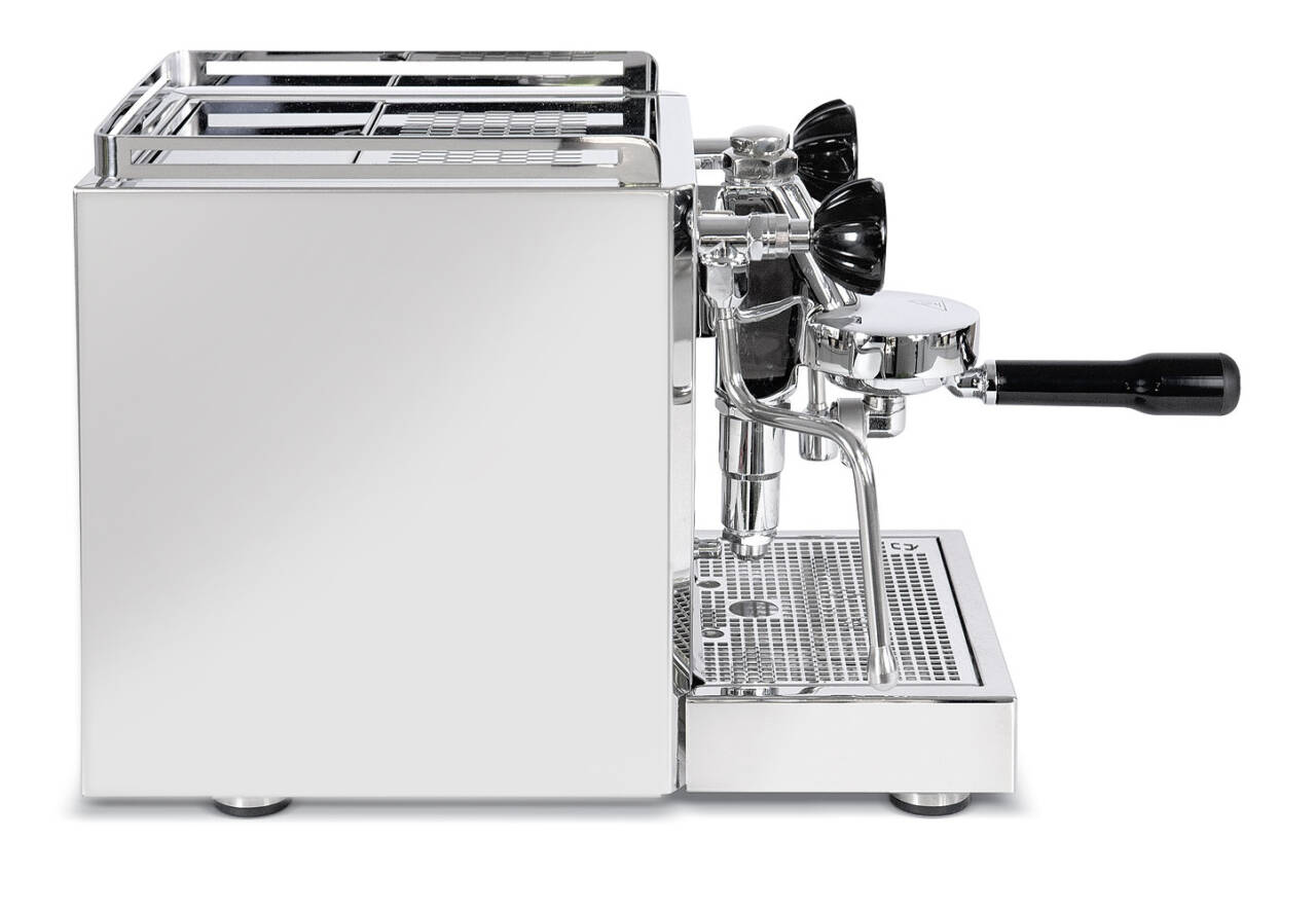 Die Espressomaschine hat alle Bauteile verbaut, welche für einen Espressobezug und einen ordentlichen Bezug notwendig sind. Mit der PID Steuerung lassen sich alle Temperaturen einstellen und das Display dient als Sekundenzähler. Mit dem Doppelmanometer haben sie die beiden Druckanzeigen, Vibrationspumpe und den Kesseldruck im Überblick. Gegenüber der normalen Rubino Ausführung hat das Siebträgermodell neue Drehgriffe für die Ventile und ein neues Abtropfgitter aus Edelstahl.