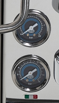 • mit 2 Manometern an der Frontseite (Brühdruck und Boilerdruck)
